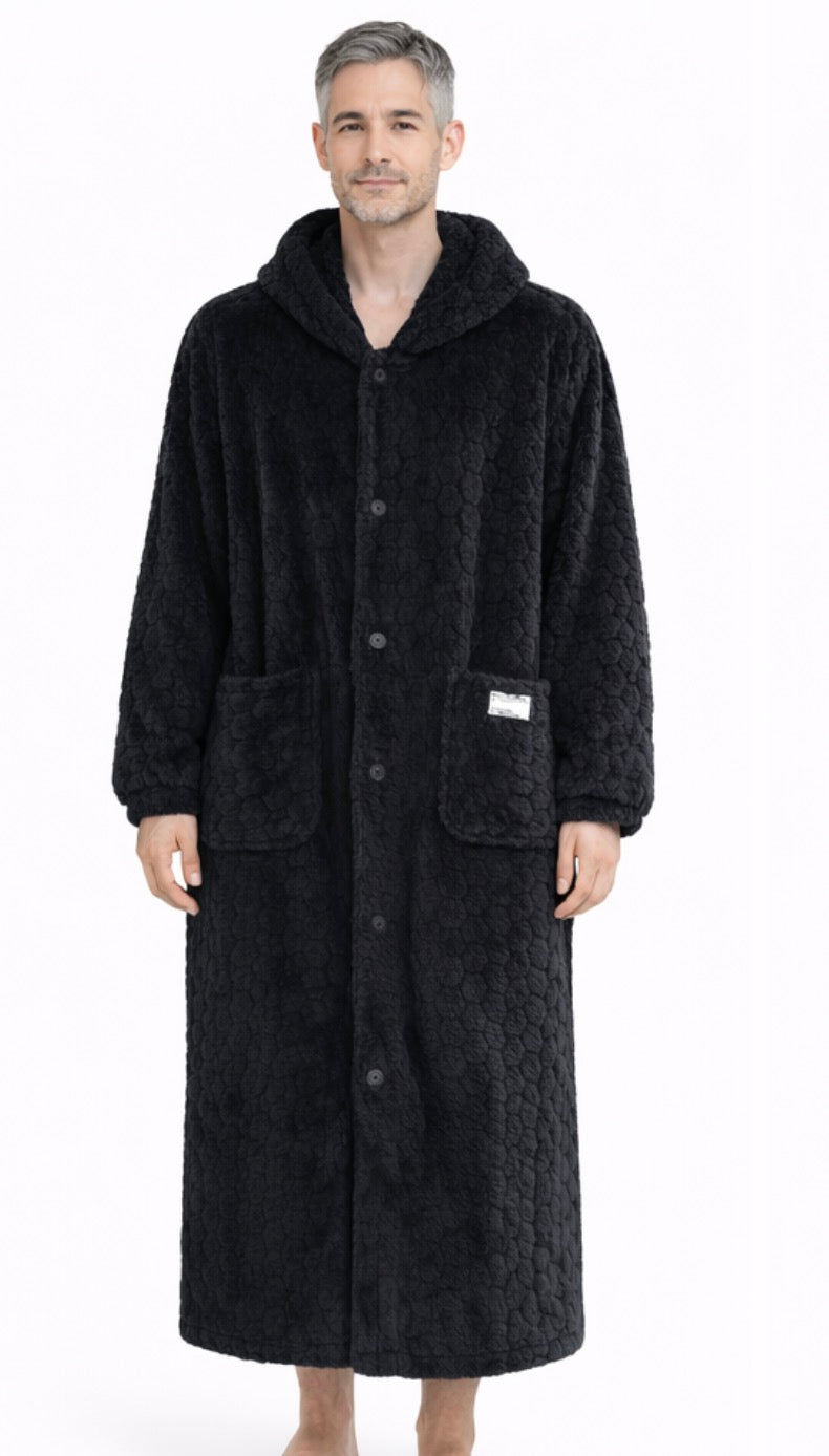 Ce peignoir d’hiver pour homme est aussi pensé pour la vie quotidienne. Sa longueur permet de couvrir le corps efficacement, ce qui renforce la sensation de chaleur. La capuche intégrée apporte un supplément de confort, notamment après une douche ou lors des matinées froides.